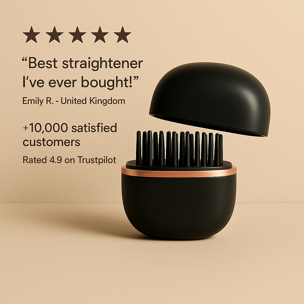Say goodbye to frizz and hello to sleek, smooth hair with LissBrush — your new everyday styling essential. Its compact design fits perfectly in your hand, making it easy to straighten your hair in just a few strokes.
